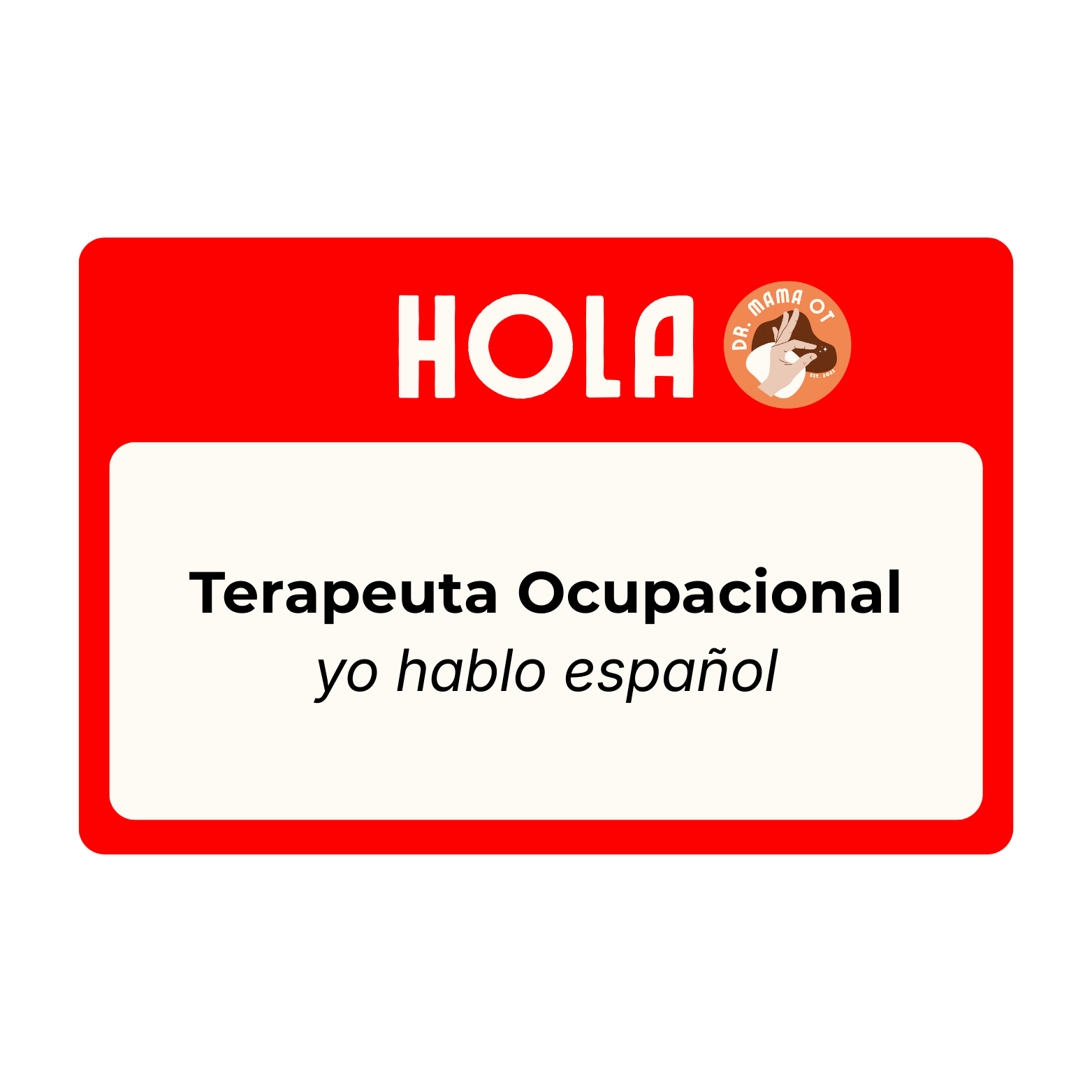 This Hola – Terapeuta Ocupacional, yo hablo español sticker is a small but powerful way to make language access visible and celebrated.