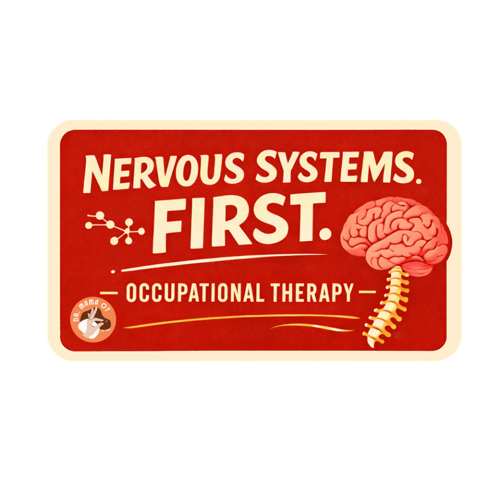 The Nervous System First sticker reflects a core Occupational Therapy principle: when the nervous system feels safe and regulated, participation, learning, and functional skills can emerge.